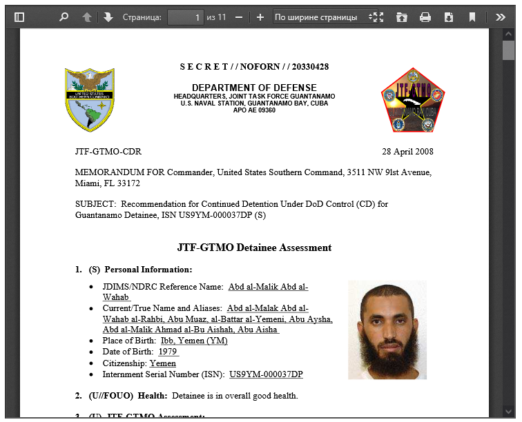 Abd Al Malak Abd Al Wahab Al Rahbi Country Yemen Place of birth Ibb, YM Birth date 01/01/79 ISN 37 [US9YM-000037DP] How to Read WikiLeaks’ Guantánamo Files ? Download the PDF file