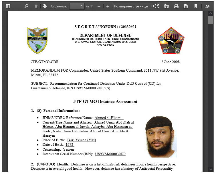 Ahmed Umar Abdullah Al Hikimi Country Yemen Place of birth Ta’iz, YM Birth date 01/01/72 ISN 30 [US9YM-000030DP] How to Read WikiLeaks’ Guantánamo Files ? Download the PDF file