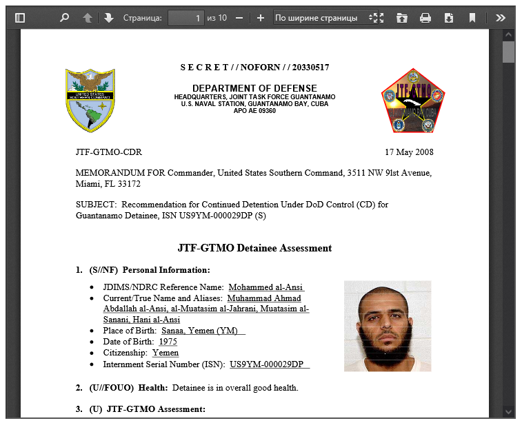Muhammad Ahmad Abdallah Al Ansi Country Yemen Place of birth Sanaa, YM Birth date 01/01/75 ISN 29 [US9YM-000029DP] How to Read WikiLeaks’ Guantánamo Files ? Download the PDF file