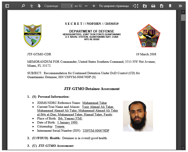 Yasir Ahmed Ali Taher Country Yemen Place of birth Ib, YM Birth date 01/01/80 ISN 679 [US9YM-000679DP] How to Read WikiLeaks’ Guantánamo Files ? Download the PDF file